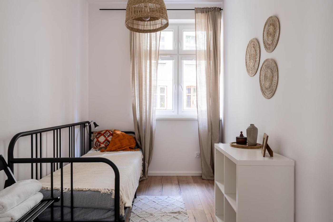 Apartament z 2 sypialniami. This spacious apartment includes 1 living room, 2 separate bedrooms and 1 bathroom with a shower and free toiletries. In the well-fitted kitchenette, guests will find a stovetop, a refrigerator, kitchenware and a microwave. The apartment offers air conditioning, a private entrance, a tea and coffee maker, a seating area, as well as a flat-screen TV with streaming services. The unit has 4 beds. Apartament - 6 osobowy. Powierzchnia pokoju ok.: 63 mkw.